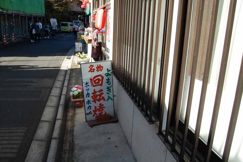 名物よもぎ回転焼きという看板が目に入りましたので、お土産に買って帰りました。