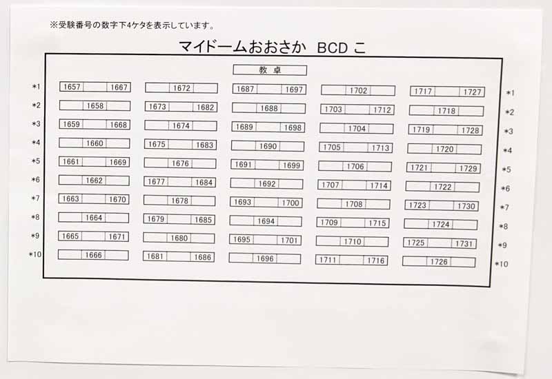 受験番号から推測すると、この日のマイドームおおさかでの受験者数は約1,600人のようです。