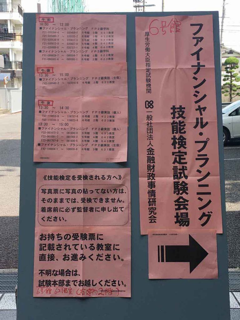 FP2級を受験した当日の記録、とっても難しい試験でした