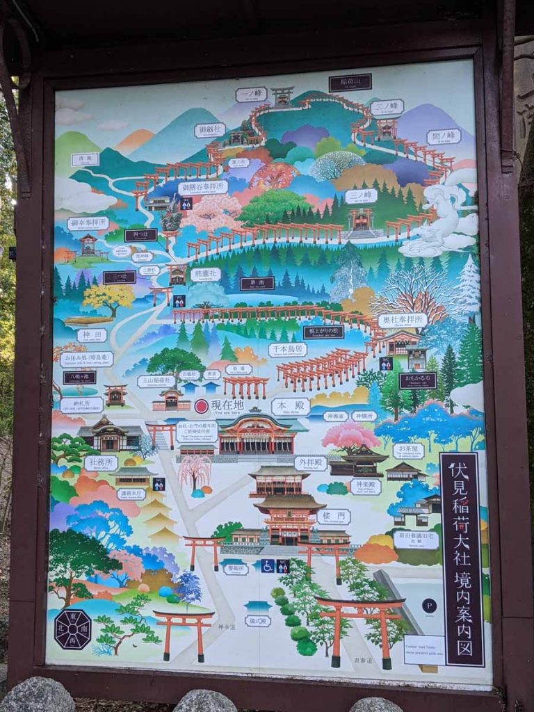 伏見稲荷大社は稲荷山をぐるっと一回りするように無数の鳥居が並びます。