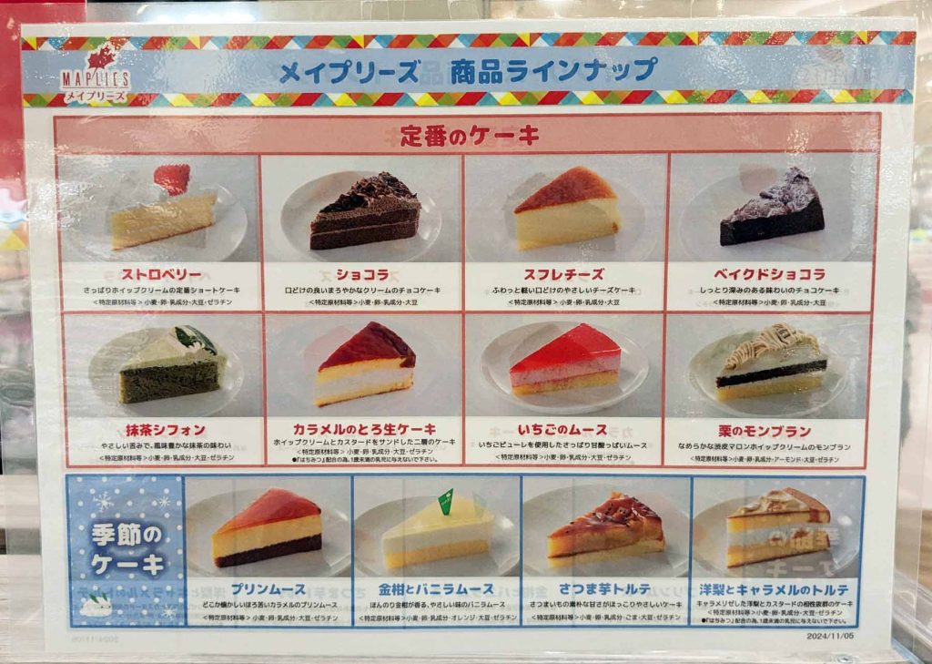 メイプリーズのケーキ、100円なんでかなり割安感があります。
