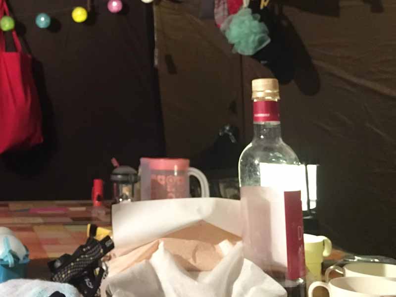 タープの下でこの雨風では、食事やカードゲームはとうてい無理でしょう。