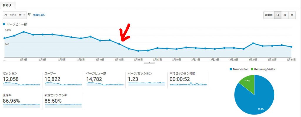 PVが半減した直後はビックリとガッカリで少し落ち込みました。